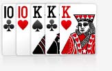 Royal Flush (berurutan sampai As dan semua motif kartu sama) Royal Flush adalah kartu Straight Flush dengan nilai yang lebih tinggi, contohnya lawan memiliki 5 6 7 8 9 keriting dan kita memiliki 10 J Q K As HATI